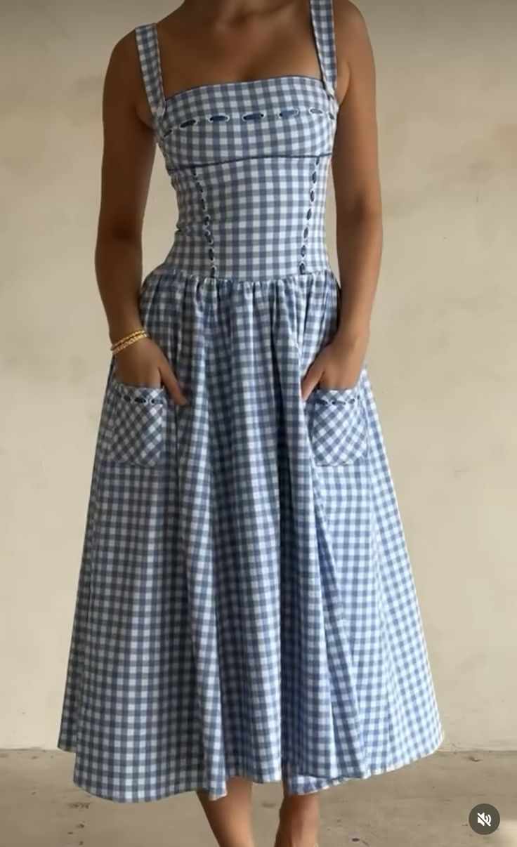 I heard the door open sound and tilted my head upstairs, and my eyes met with two familiar deep green eyes. Her face is a little red, and her skin is glowing like a baby's. She dolled up in a check dress. The light blue and white gingham gives a fresh, Vintage feel. The full, A-line skirt with pockets and a fitted bodice with button-like detailing and wide straps. Her hair was loose and straight. She must have used Straightener.